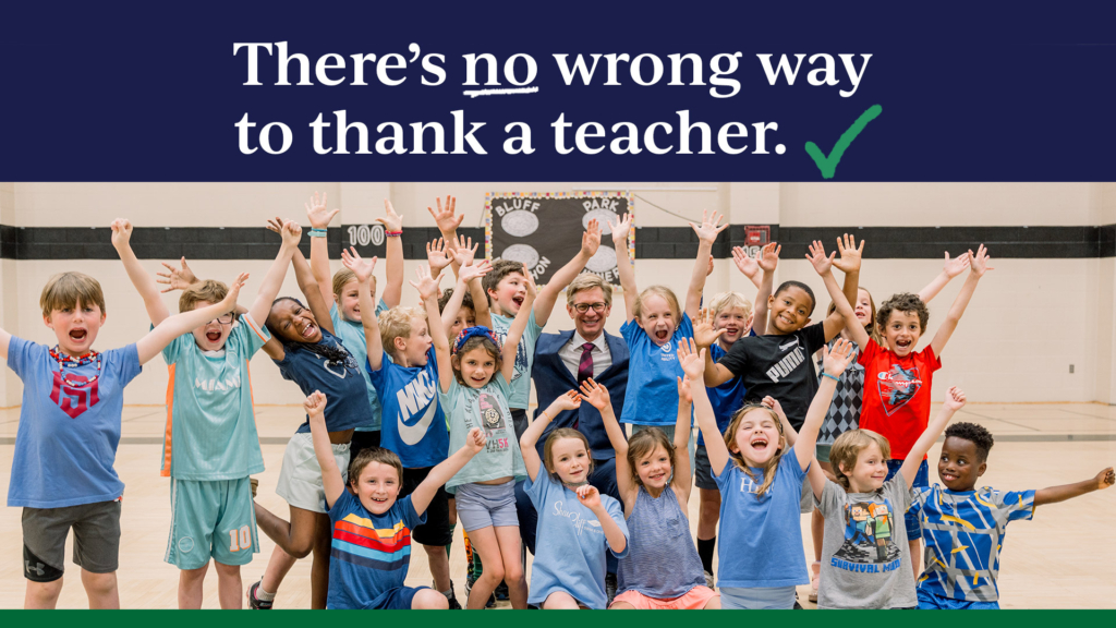 This month, it doesn’t matter if you leave a note or say thank you. If you give a gift or a performance. If you give them a day to remember or one to relax. There’s no wrong way to thank a teacher for everything they’ve done. If you’re not sure where to start, begin below with our Thank You Generator for some of our favorite ways to show your appreciation.